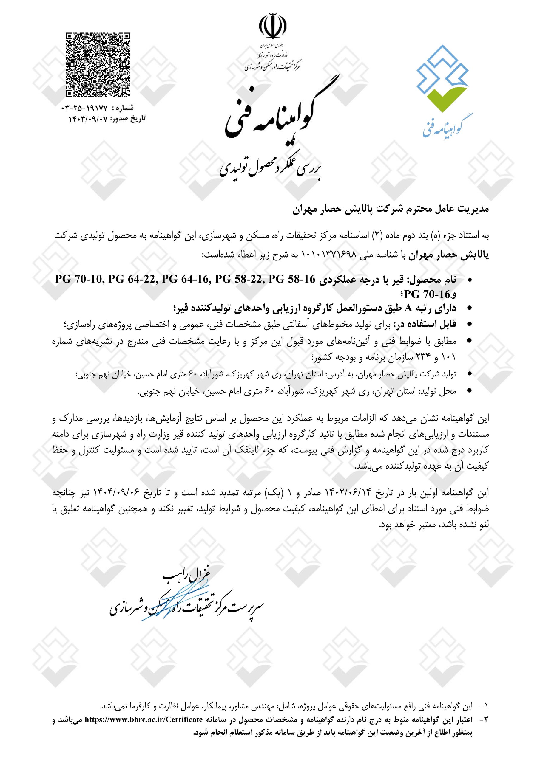 گواهینامه ها و مجوز ها شرکت پالایش حصار مهران گواهینامه ISO 17025 آزمایشگاه پالایش،حصار مهران مشاهده و دانلود سایر گواهینامه ها
